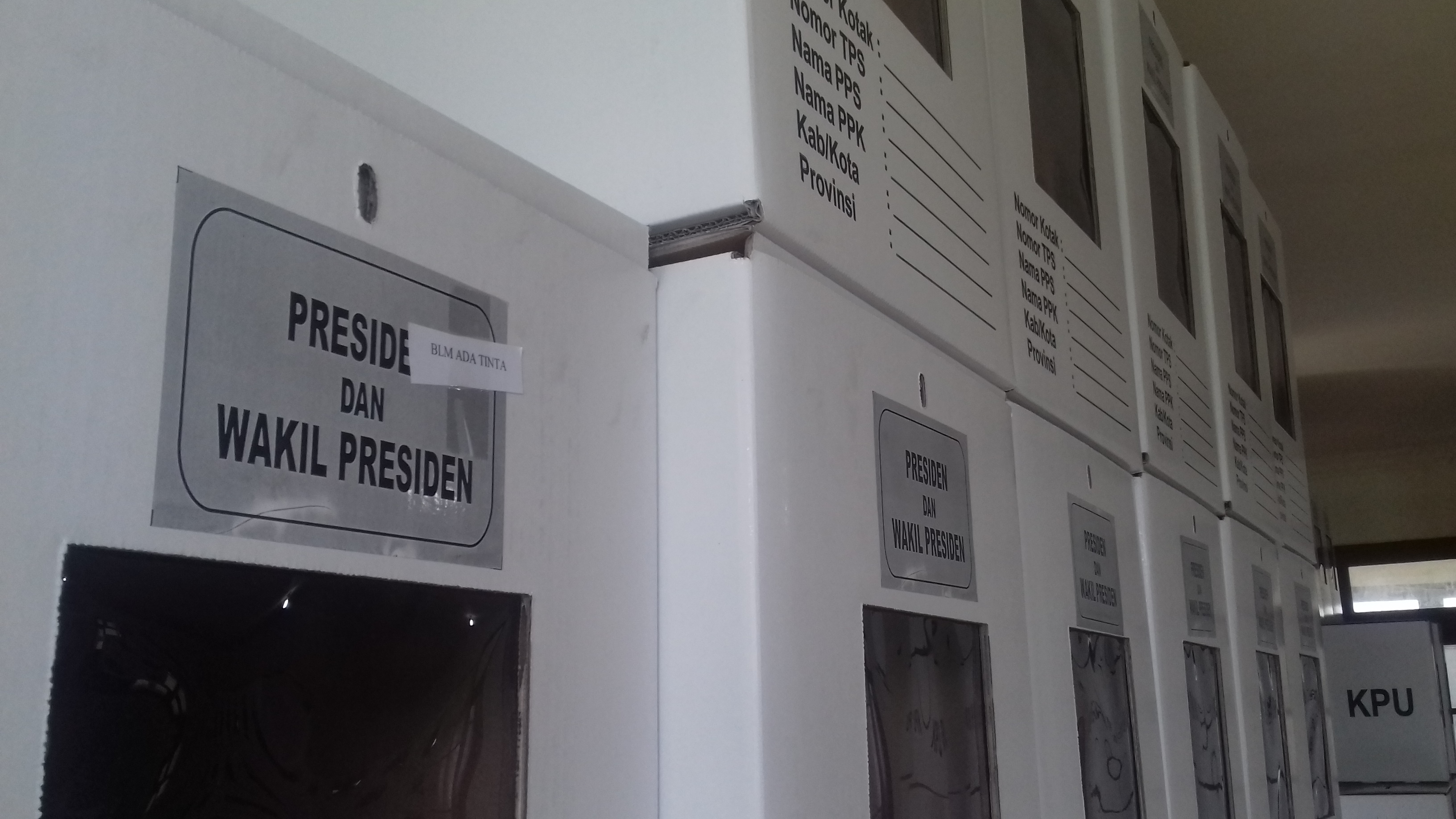 "Ada 4.117 kotak suara telah dirakit dan masih kekurangan 110 kotak. Tinta sidik jari masih kurang 12 botol. Sedangkan bilik suara kelebihan 272 bilik suara."