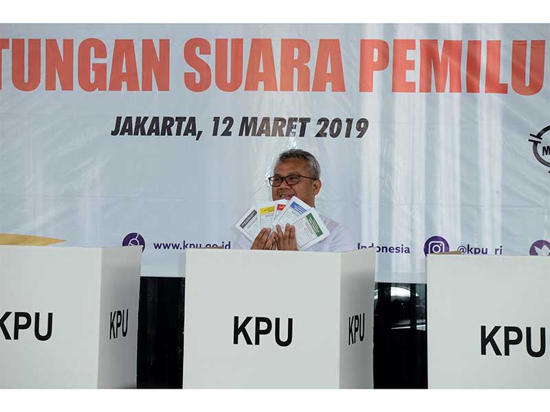 Simulasi pemungutan dibuat sedemikian rupa seperti suasana pencoblosan pada 17 April mendatang.