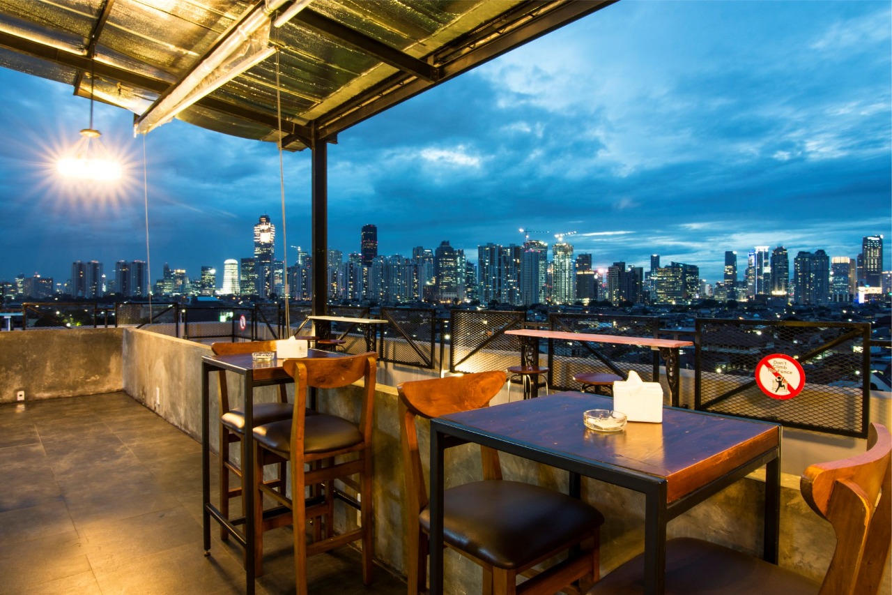 PERON Skycafe juga merupakan cafe & tempat makan tertinggi di Jakarta selatan dengan pemandangan kota jakarta 360 derajat yang menakjubkan.