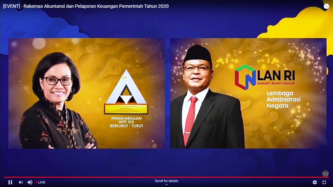 Penghargaan tersebut diberikan Kementerian Keuangan Republik Indonesia setelah memeriksa Laporan Keuangan LAN Tahun Anggaran 2019.