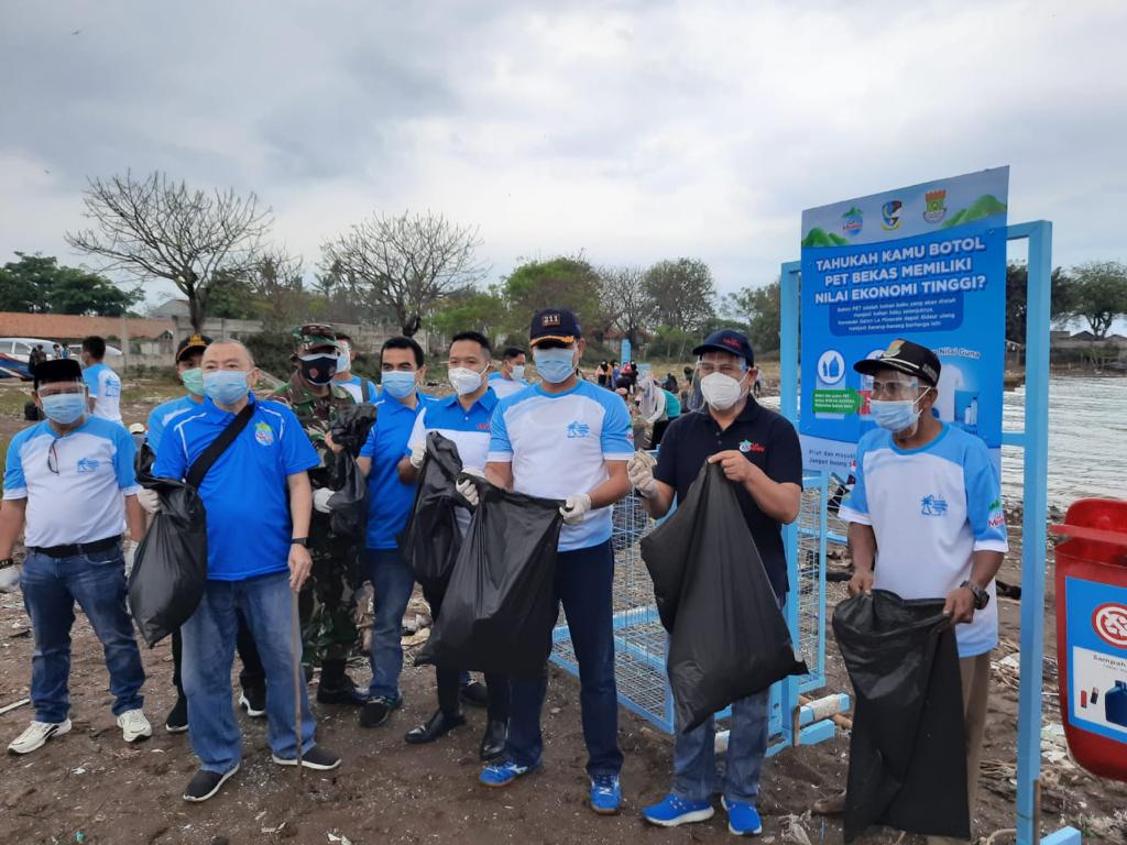 Sejumlah tempat sampah disediakan Le Minerale di pantai.