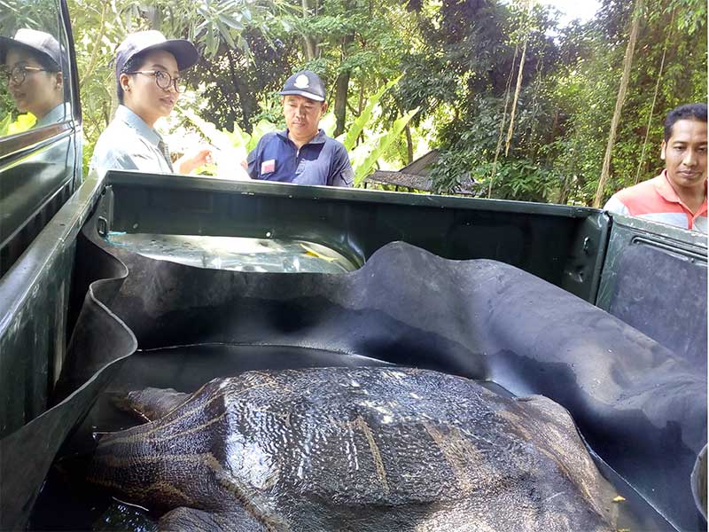 Bulus raksasa itu ditemukan warga di Sungai Sempor Dusun Manyaran, Keluarahan Triharjo, Sleman, beberapa hari lalu.
