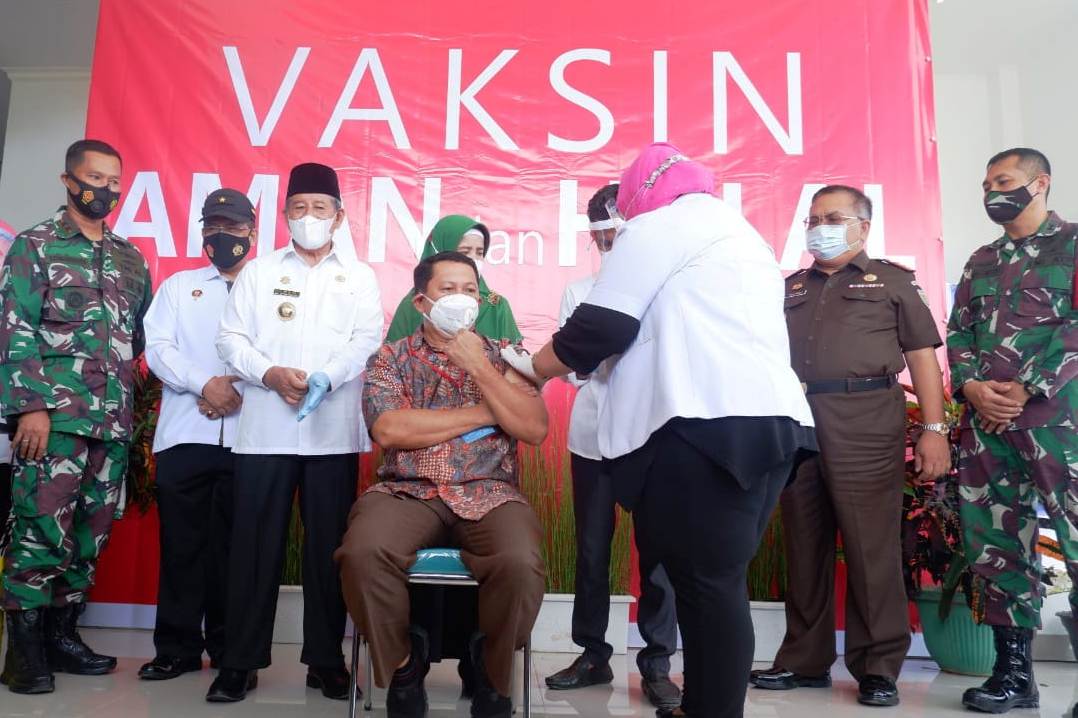 Thuraiqiyyah Syamsuddin menerima vaksin sinovac bersama para pejabat publik dilingkup Provinsi Maluku Utara (Malut).
