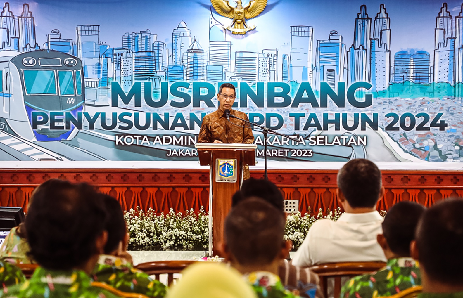 Kegiatan Musrenbang diselenggarakan secara berkeliling di seluruh wilayah kota/kabupaten administrasi Jakarta sebagai landasan Rencana Kerja Pembangunan Daerah (RKPD) Tahun 2024.