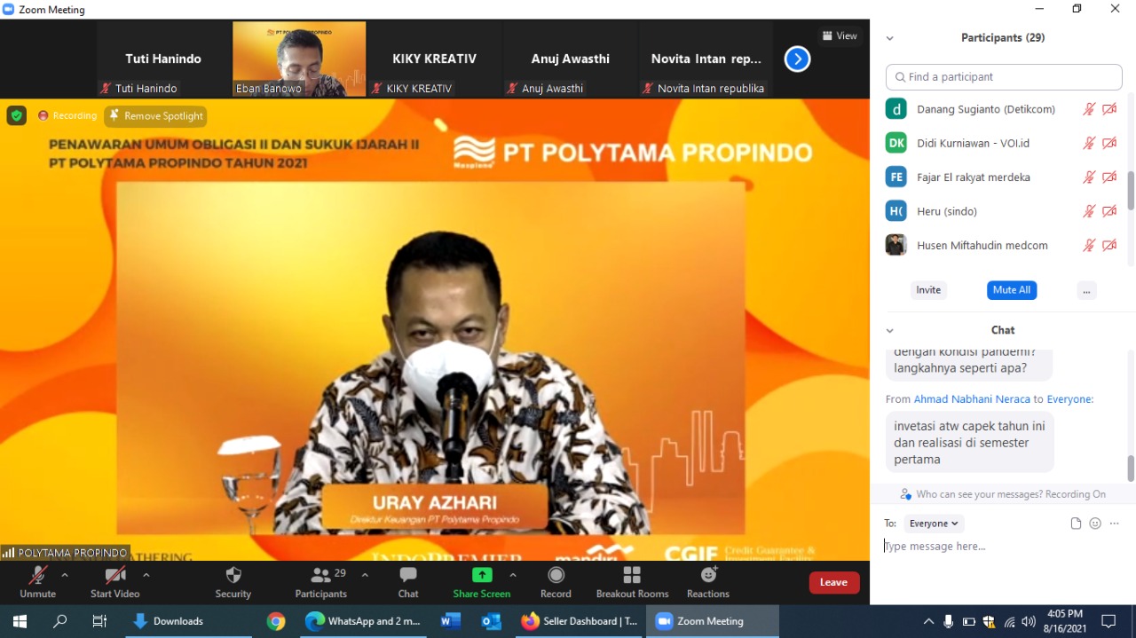 PT Pemeringkat Indonesia (Pefindo) telah memberikan peringkat idAAA (cg) untuk Obligasi II PT Polytama Propindo Tahun 2021