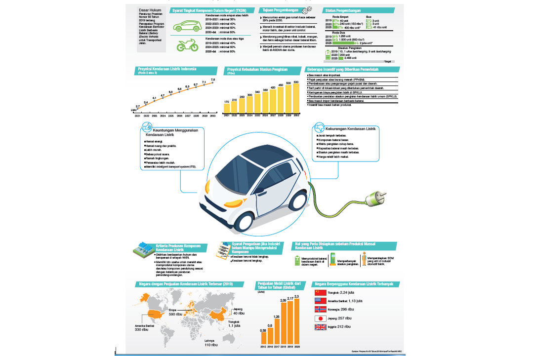 PENGEMBANGAN kendaaran listrik di dalam negeri diharapkan semakin melejit setelah pemerintah memberikan dukungan penuh, termasuk terkait dengan infrastruktur pendukung.