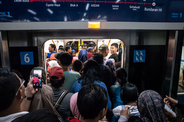 Pengguna MRT terlihat masih banyak yang belum mengetahui tata cara naik moda transportasi tersebut.