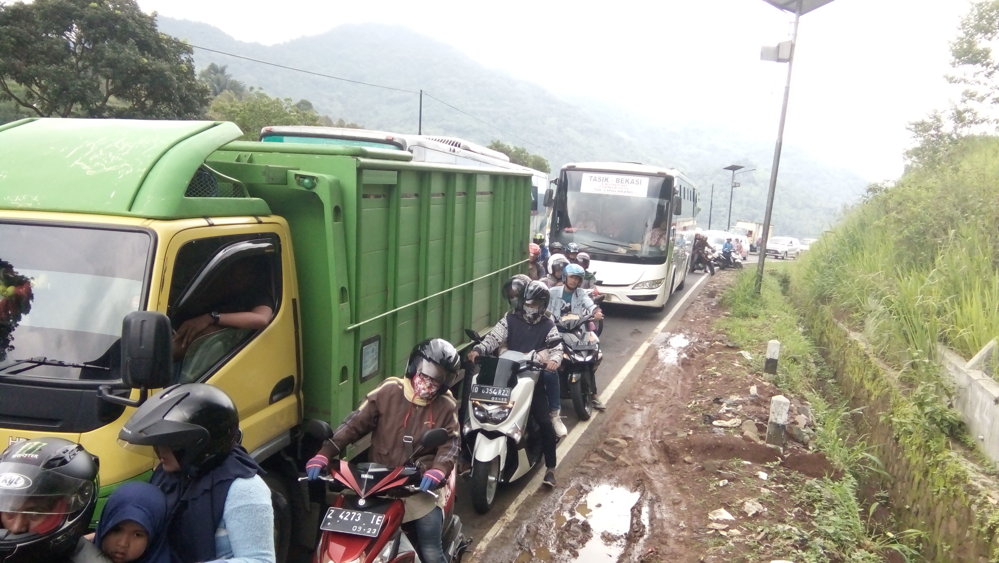 Kendaraan yang sudah berada di tanjakan Gentong atas bisa balik arah menuju Singaparna via Garut menuju Bandung.