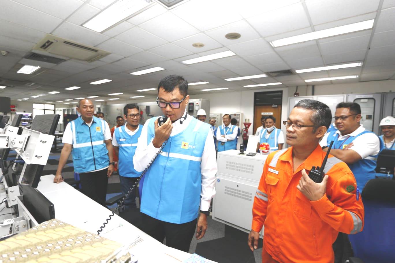 Dirut PLN Darmawan Prasodjo memastikan secara langsung keandalan pasokan listrik di control room Pembangkit Listrik Tenaga Gas dan Uap (PLTGU) Tambak Lorok di Semarang, Jateng.