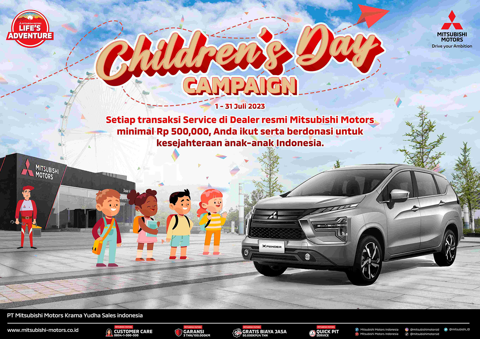Konsumen Mitsubishi Motors dapat turut berkontribusi dalam kampanye ini dengan melakukan transaksi di diler resmi Mitsubishi Motors di seluruh Indonesia selama Juli 2023.