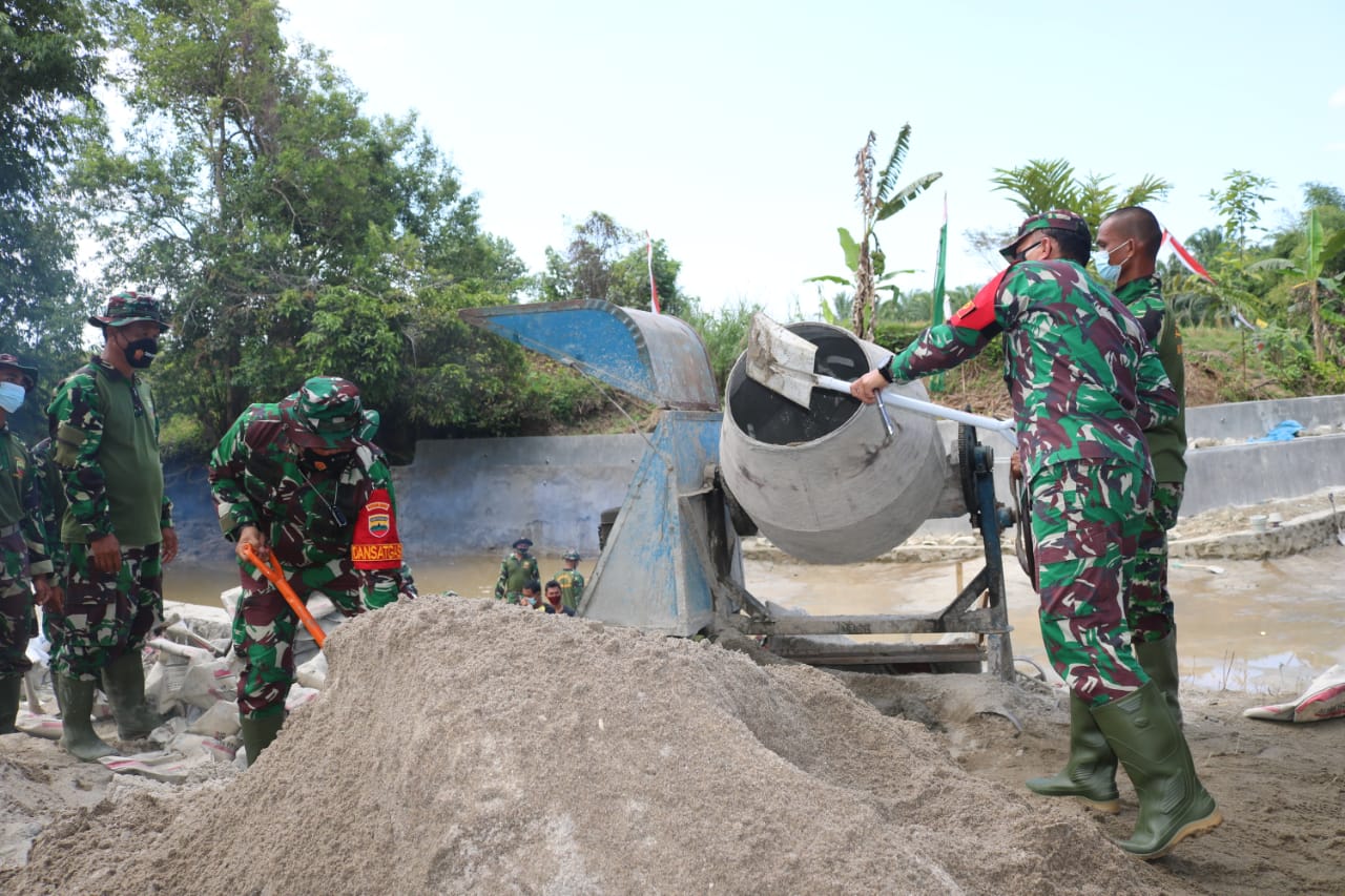 Adapun perkembangan pembuatan bendungan sungai Bah Biak dengan panjang 25 meter telah mencapai 80%.