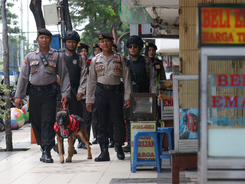 Para personel kepolisian itu melakukan razia dan patroli untuk mencari pelaku teror.
