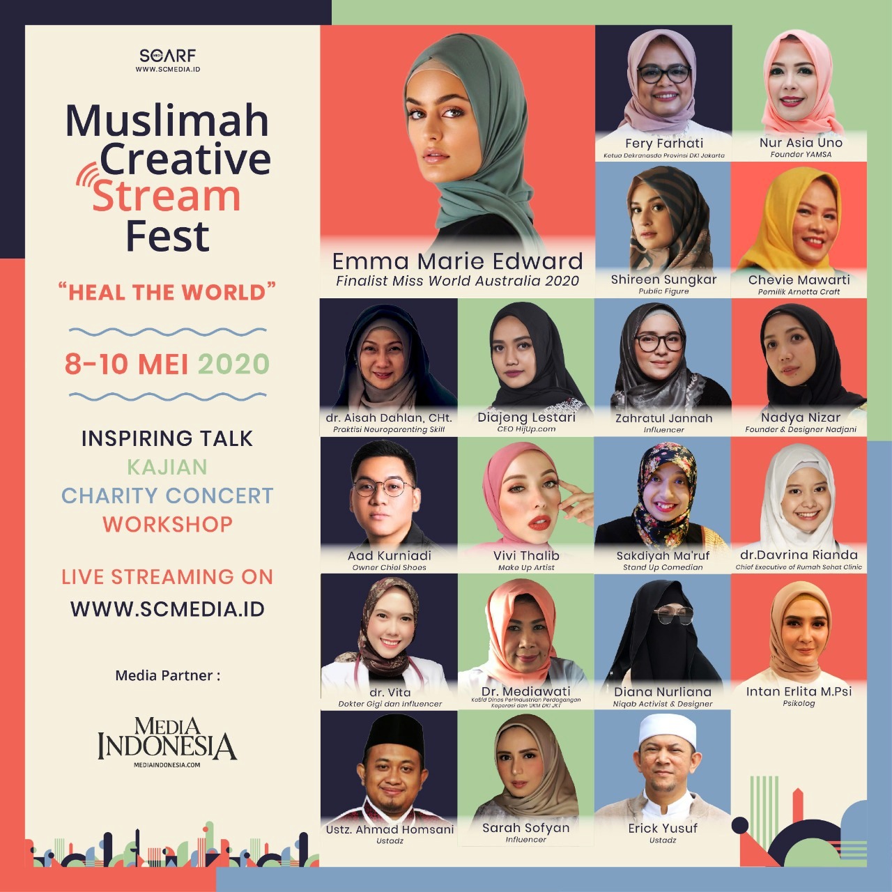 Muslimah Creative Stream Fest 2020 merupakan sebuah acara yang dibuat secara online untuk pertama kalinya. Acara ini mempertemukan ragam tokoh inspiratif yang bisa menginspirasi.
