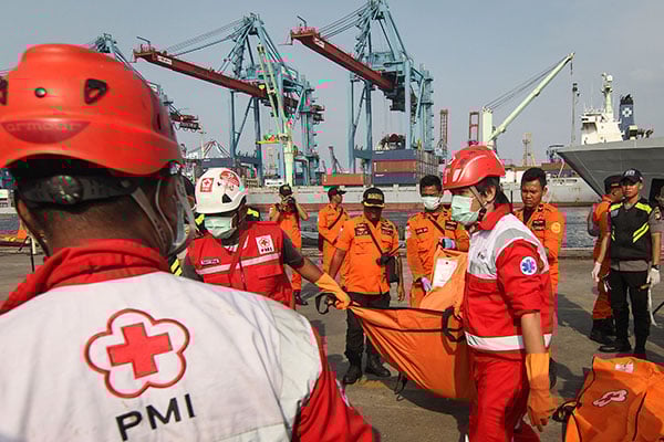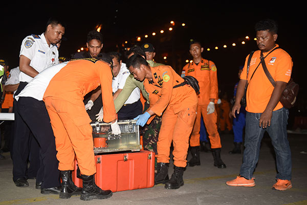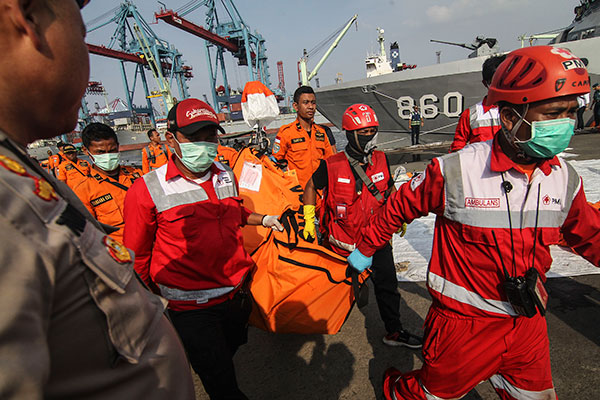 Satu di antara banyak kantong jenazah terpisah sendiri. Isinya berupa puing pesawat Lion Air rute Jakarta-Pangkalpinang dan barang dari penumpang.