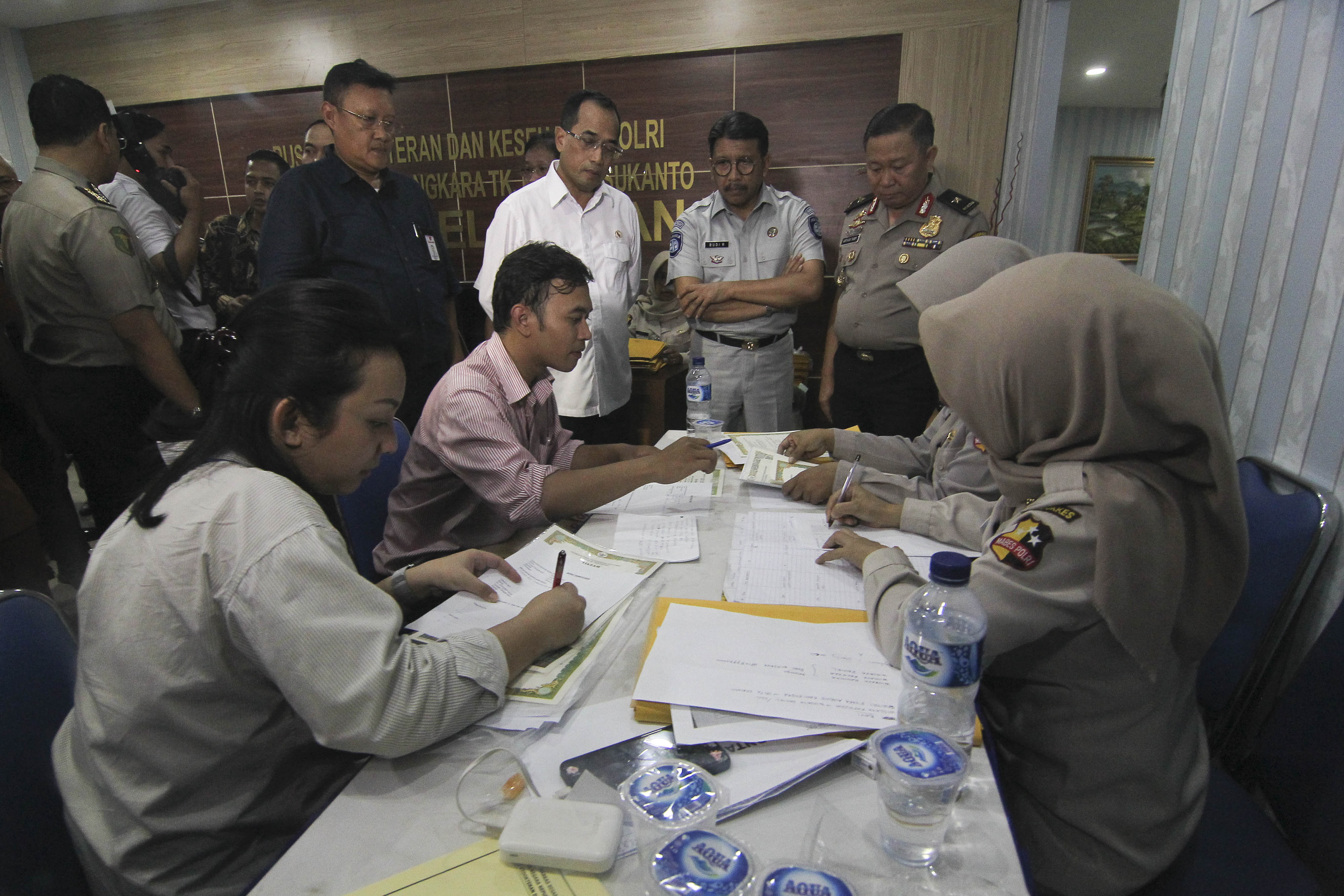 Tim pendampingan psikologi RS Polri bekerja sama dengan Kementerian Kesehatan, TNI dan Himpunan Psikologi Indonesia (HIMPSI) di Posko Keluarga RS Polri Kramat Jati.