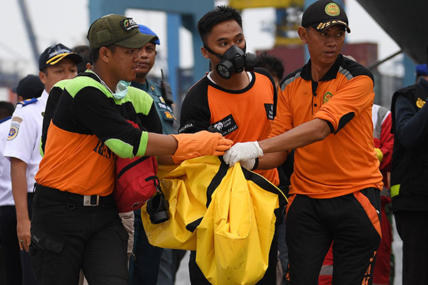 Dua kantong berisi barang milik korban dan serpihan pesawat sementara dua lainnya berisi potongan tubuh korban