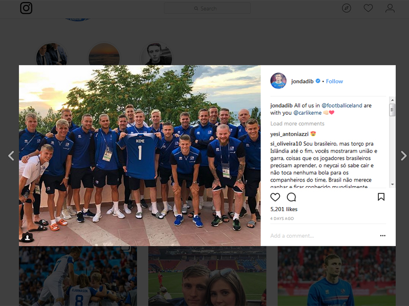 Seluruh pemain Islandia menandatangani jersey penjaga gawang Islandia yang menampilkan nama Ikeme dan nomor punggung 1.