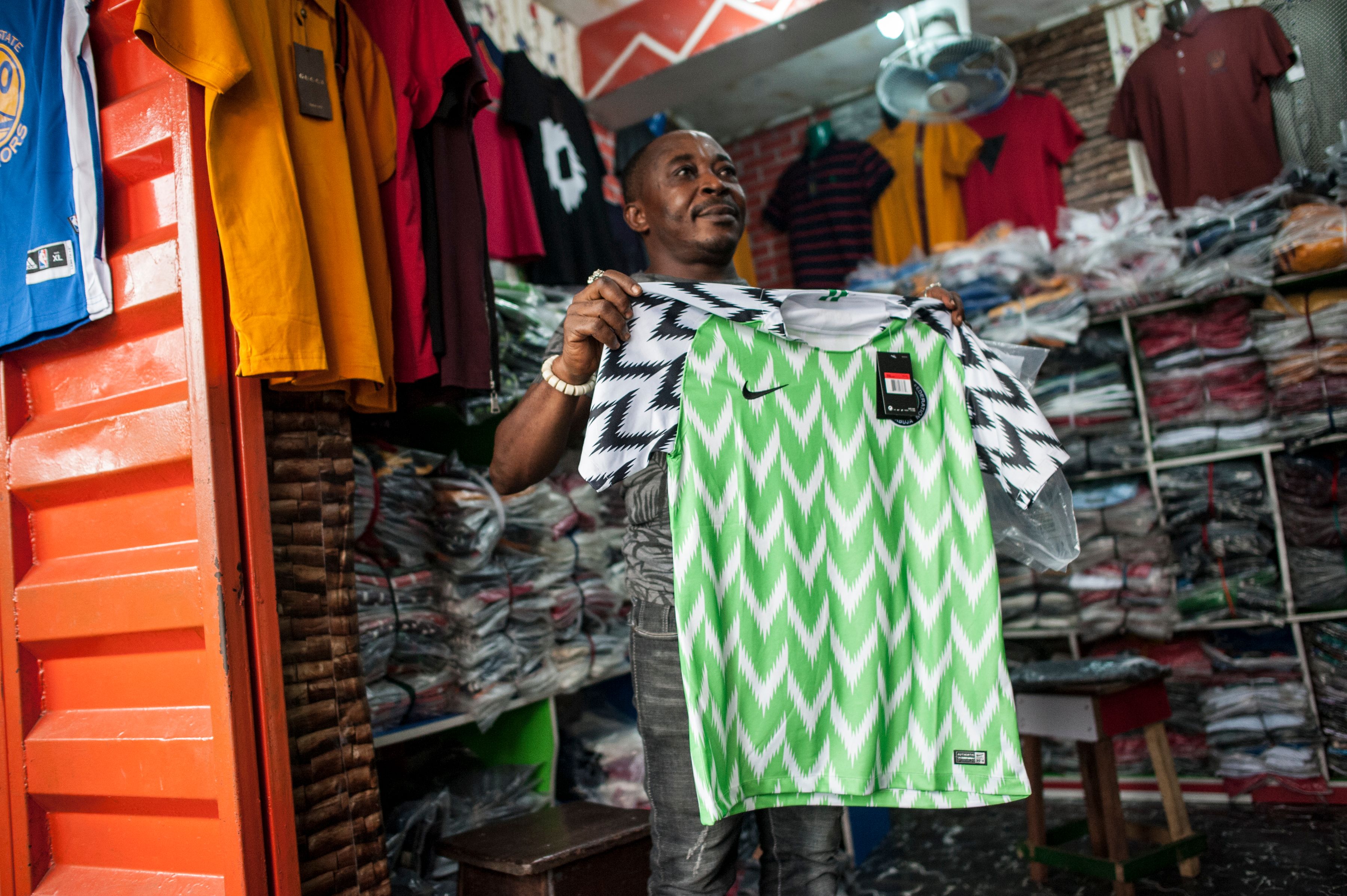 Jersey resmi keluaran Nike dianggap terlalu mahal sehingga banyak pendukung Nigeria yang memilih untuk membeli jersey KW.