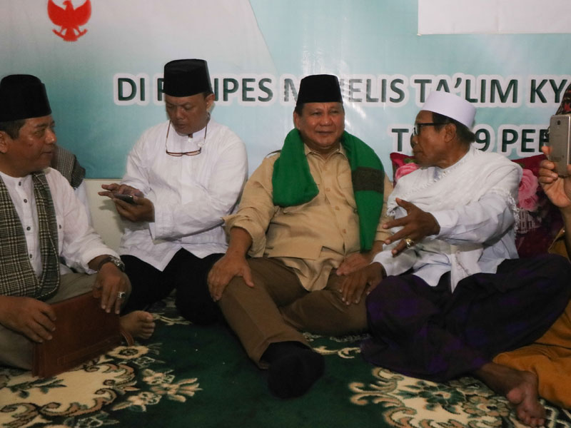 KEDATANGAN Prabowo Subianto ke Jalan Bogorami I, Surabaya, Jawa Timur, disambut pendukung Joko Widodo-Ma'ruf Amin, kemarin.