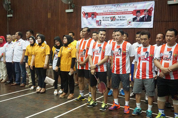 Mereka yang bertanding dalam memperebutkan Piala Pemilu Damai 2019 tersebut adalah relawan pasangan calon yang tergabung dalam Galang Kemajuan (GK) Jokowi dan Padi Satu Hati Malaysia.