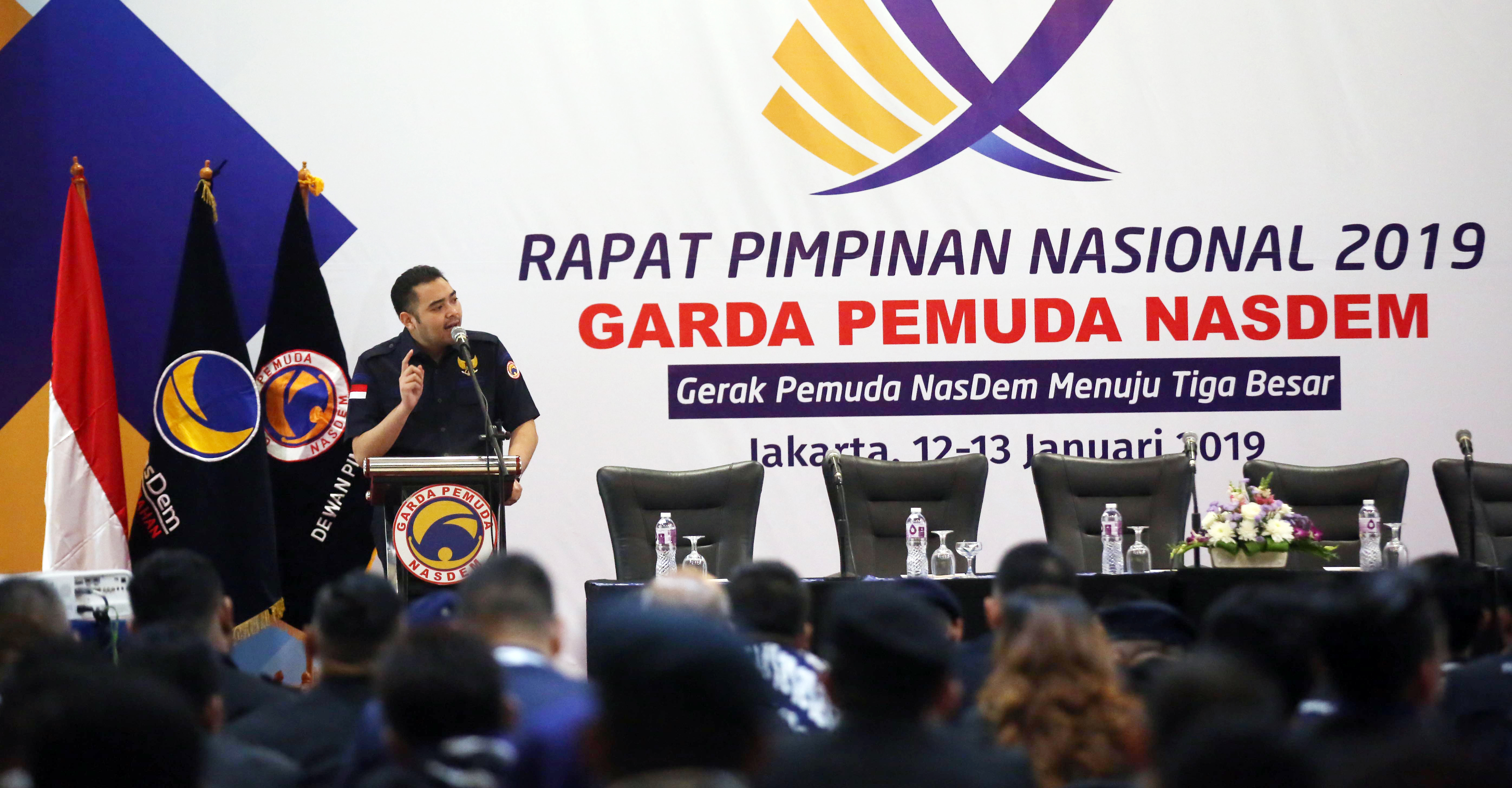 RAPAT Pimpinan Nasional (Rapimnas) DPP Garda Pemuda (GP) NasDem yang berlangsung pada Sabtu hingga Minggu (12-13/1) mendorong agar Partai NasDem mampu mewujudkan kemenangan tiga besar partai dalam Pemilu 2019.