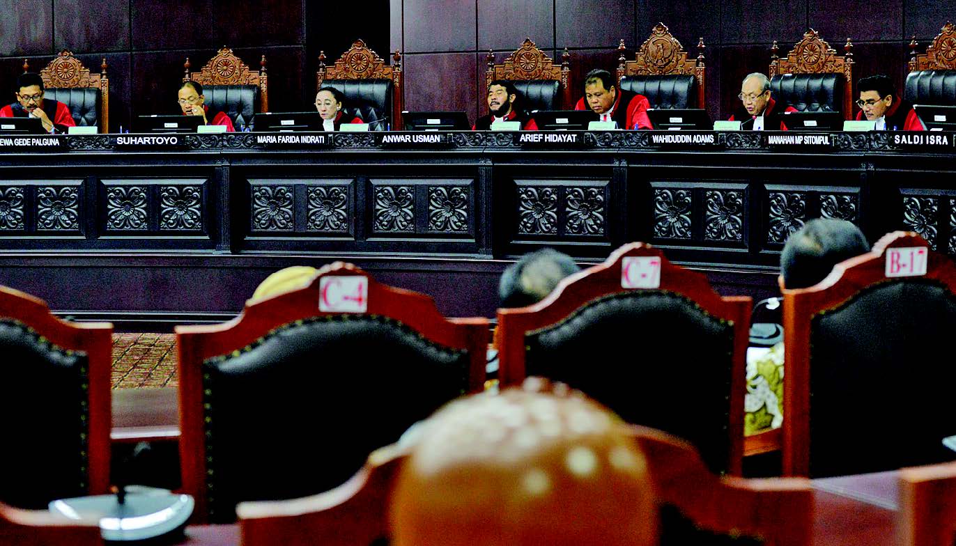 Amar putusan Mahkamah Konstitusi (MK) menolak permohonan uji materi Pasal 7 ayat (2) huruf s UU Pilkada, yang diajukan tujuh anggota DPD dan seorang anggota DPR.