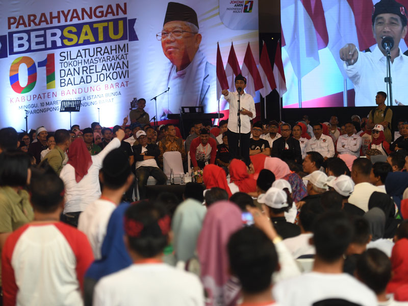Kubu Jokowi-Ma'ruf mengaku enggan berpuas diri meski unggul dari hasil riset sejumlah lembaga survei.