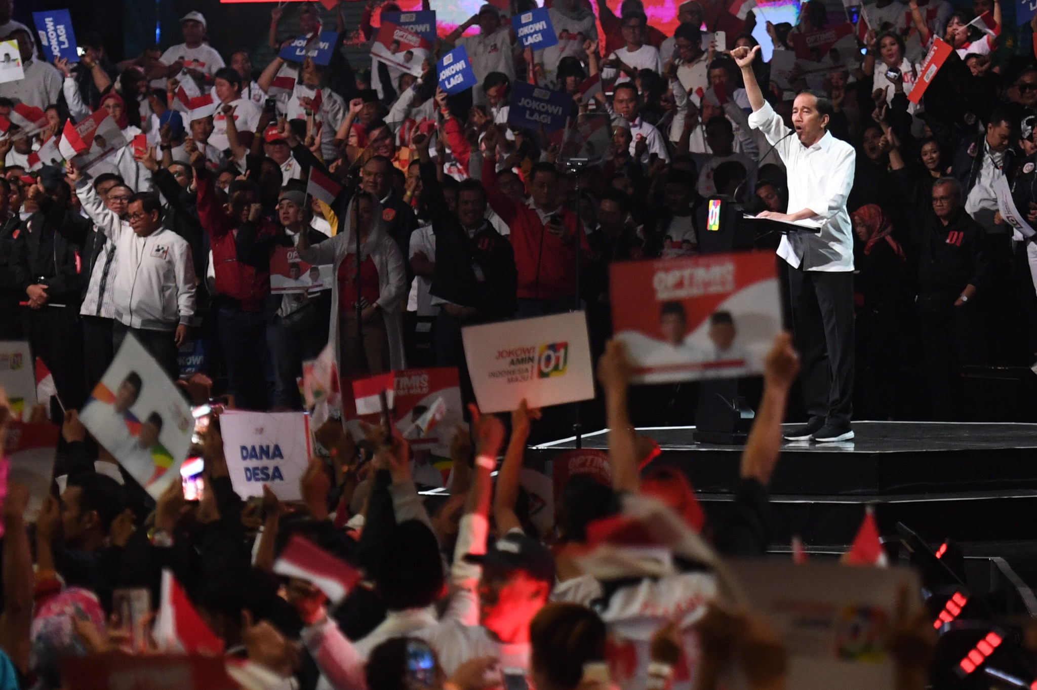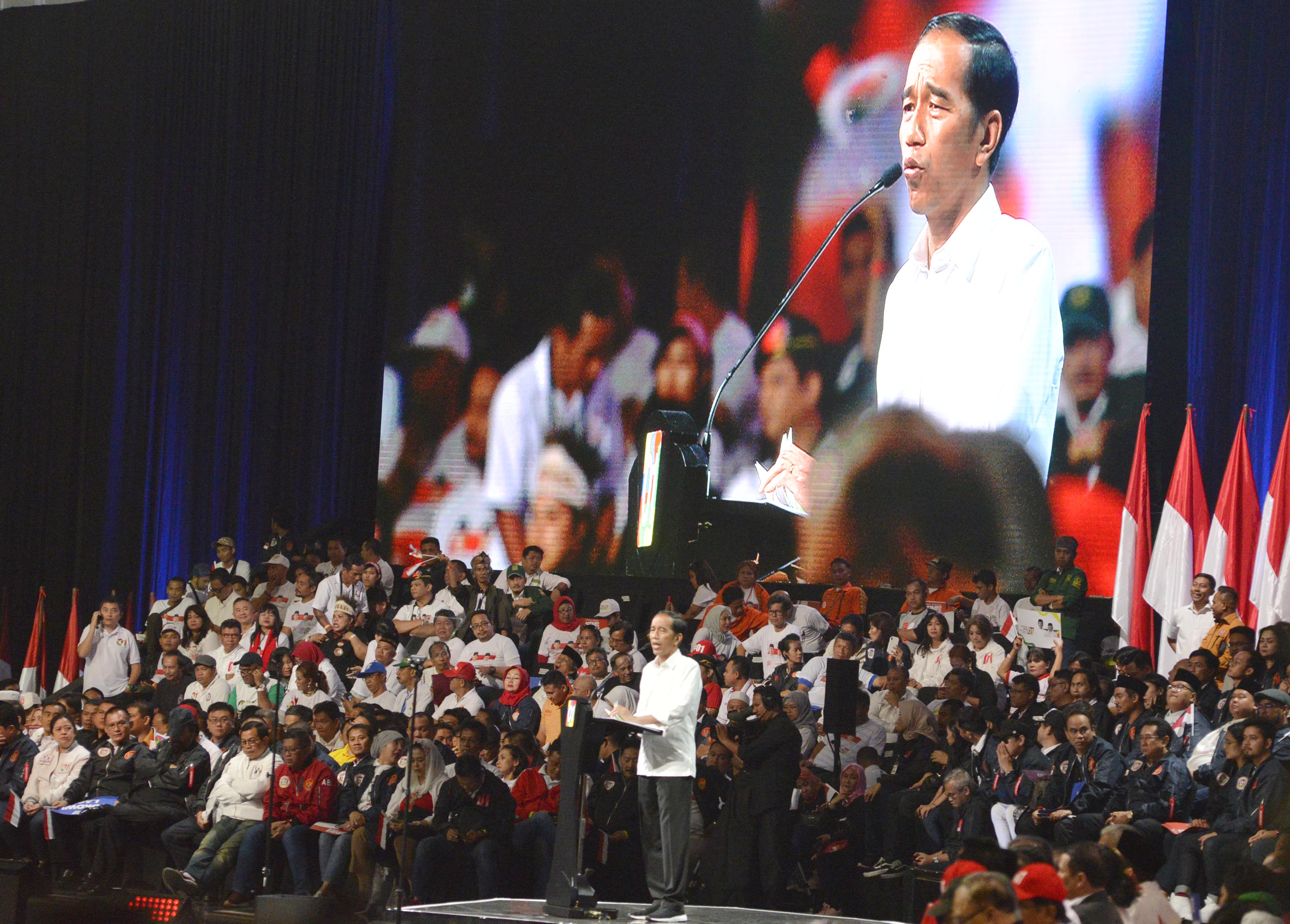DENGAN mengenakan kemeja putih ciri khasnya, calon presiden Joko Widodo menyapa sekitar 30 ribu relawan dari seluruh Indonesia yang menghadiri Konvensi Rakyat di Sentul International Convention Center, Bogor, Jawa Barat, tadi malam.