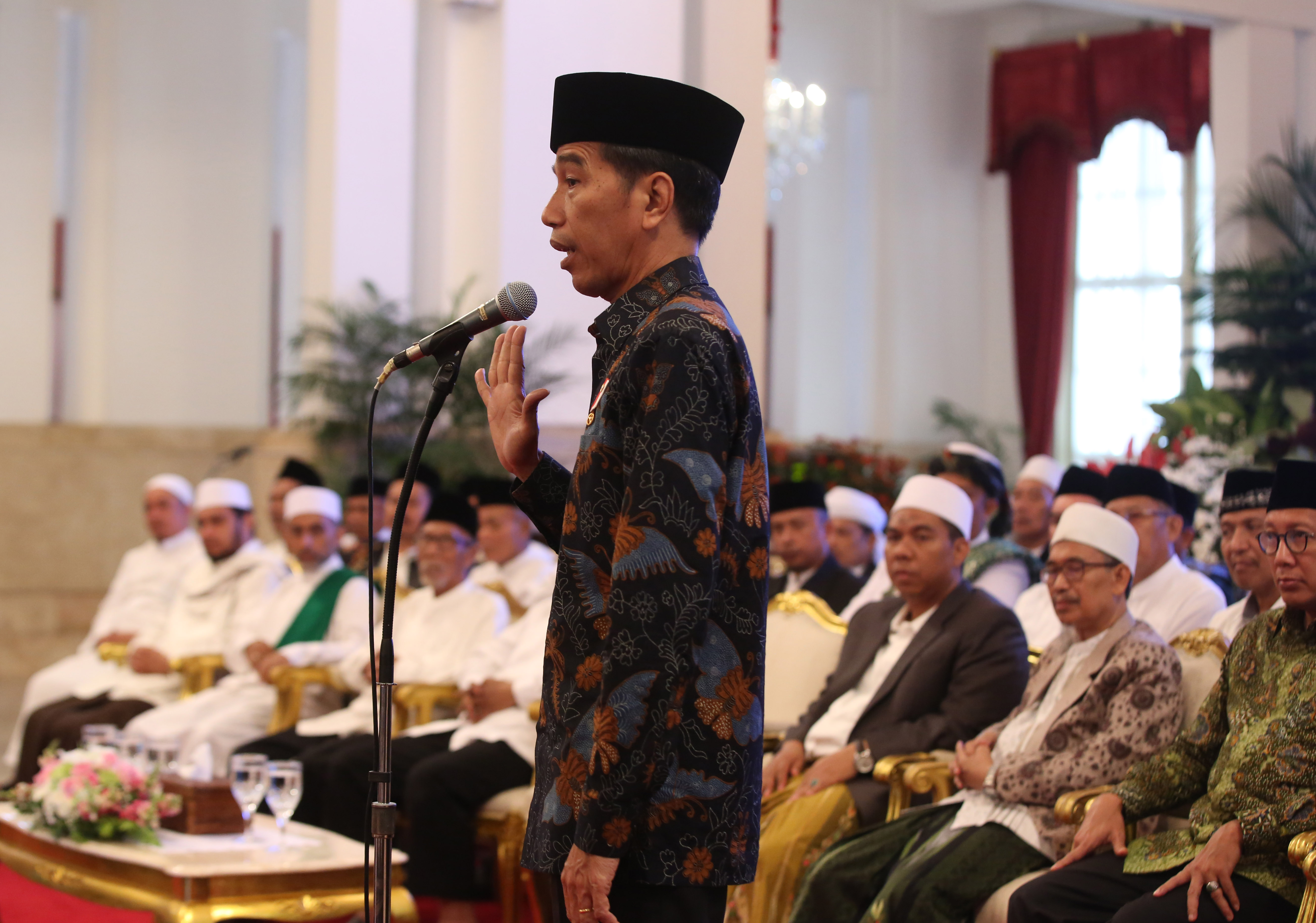 Ratusan kiai dan habib yang diwakili Ketua MUI DKI Jakarta KH Zulfa Mustofa menyampaikan terima kasih telah diundang untuk bersilaturahim di Istana Negara.