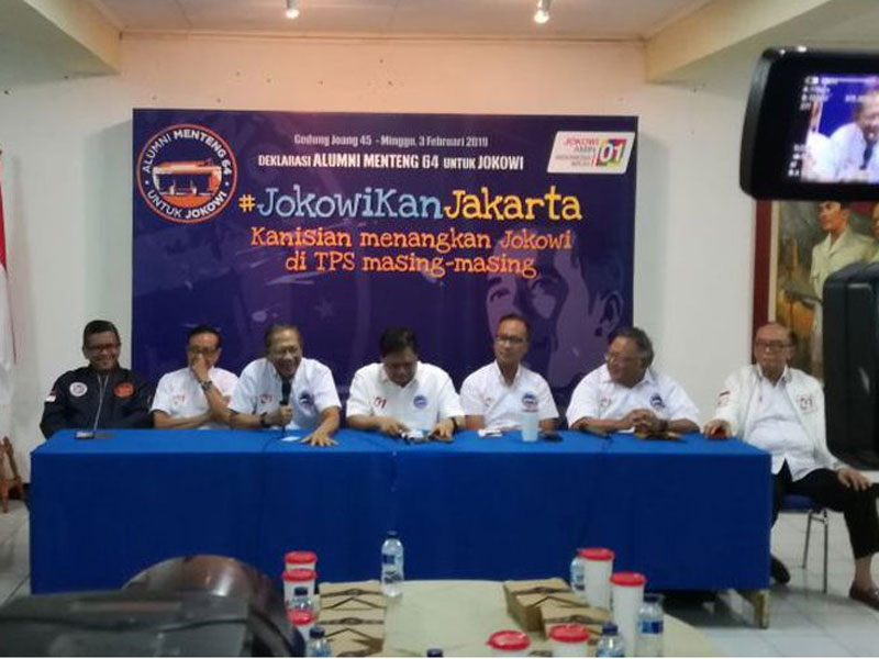 Sejumlah alumi Kanisius berkumpul di Gedung Djoeang, Menteng untuk mendeklarasikan dukungan untuk Jokowi dengan tagar #JokowikanJakarta.