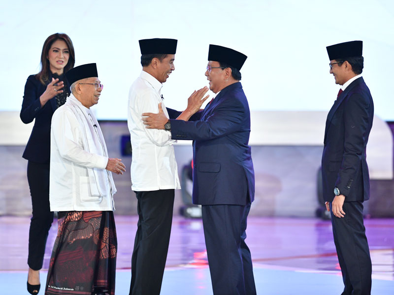 , Jokowi juga berhasil memberikan pertanyaan tajam yang menjadi pukulan telak bagi pasangan Prabowo Subianto-Sandiaga Uno.