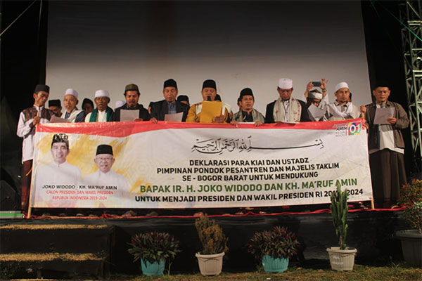 RATUSAN pengasuh pesantren, kiai, dan ustaz se-Bogor Barat, Jawa Barat, mendeklarasikan dukungan terhadap pasangan