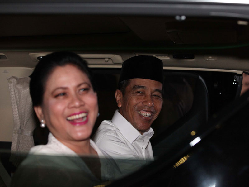 PASANGAN calon presiden nomor urut satu Joko Widodo (Jokowi)-Ma'ruf Amin kompak mengandeng istri masing-ma-sing ke lokasi debat pertama Pemilihan Presiden 2019.