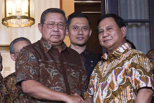 Prabowo dan SBY kembali menggelar pertemuan yang sifatnya rutin di kediaman SBY pada Jumat (21/12). Pertemuan ini sebagai bagian dari konsolidasi lanhutan hntuk oemenangan Prabowo-Sandi di Pilpres 2019 yang juga didukung oleh Partai Demokrat.