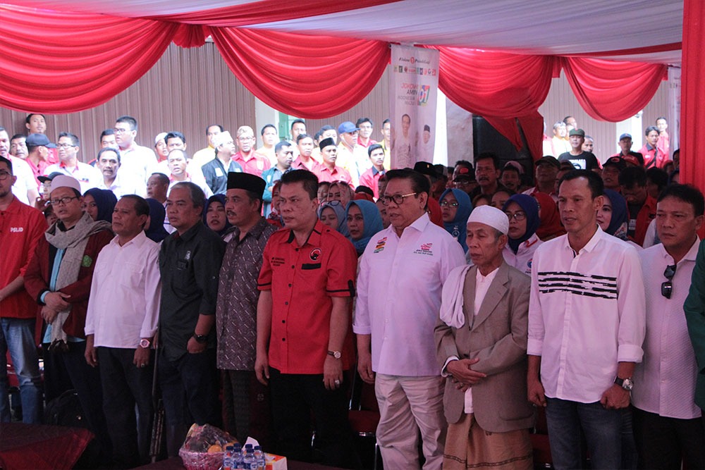 Sebanyak 3.900 pendukung pasangan calon Presiden dan Wakil Presiden Joko Widodo-Ma'ruf Amin menghadiri acara yang sekaligus deklarasi dari sembilan partai koalisi Indonesia Kerja Kabupaten Bogor.