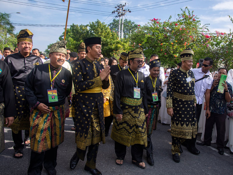 PRESIDEN Joko Widodo menerima gelar kehormatan adat sebagai Datuk Seri Setia Amanah Negara di Balai Lembaga Adat Melayu Riau, Kota Pekanbaru, Riau, kemarin