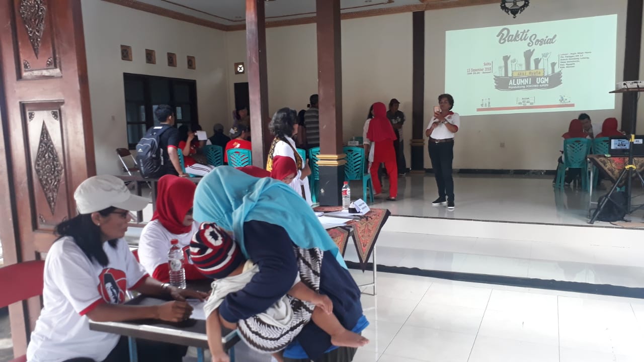 ALUMNI Universitas Gadjah Mada (UGM) Pendukung Jokowi-Amin telah menggelar bakti sosial di Joglo Mbah Mono, Jalan Palagan Km 12, Dusun Gondang Lutung, Desa Donoharjo, Kecamatan Ngaglik, Sleman, DI Yogyakarta, Sabtu (15/12).