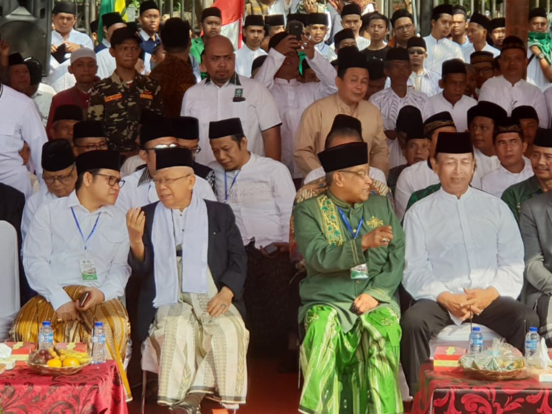 Nama Cawapres Nomor urut 01, KH Ma'ruf Amin, disebut dan didoakan dalam upacara Apel Hari Santri yang digelar di Lapangan Dadaha, Tasikmalaya, Jawa Barat, Senin (22/10).