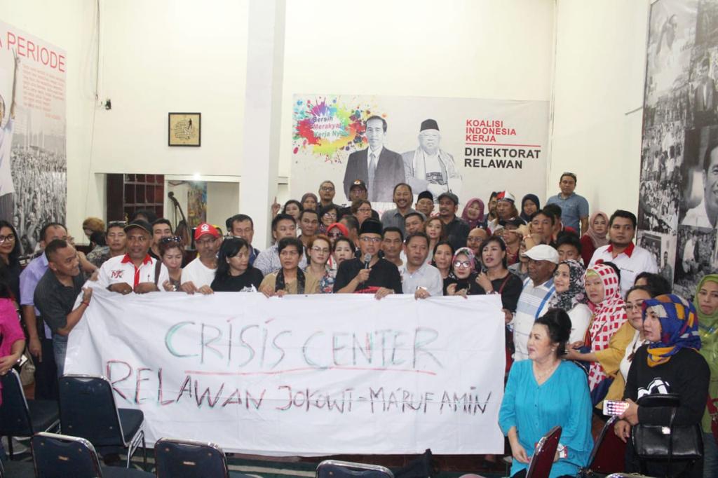 Crisis Center Jokowi-Kyai Ma'ruf Amin akan mulai beroperasi pada hari ini, Selasa (2/10) dan dipusatkan di Rumah Aspirasi Relawan Jokowi-Kyai Ma'ruf Amin yang beralamat di Jalan Proklamasi No. 46 Jakarta Pusat.