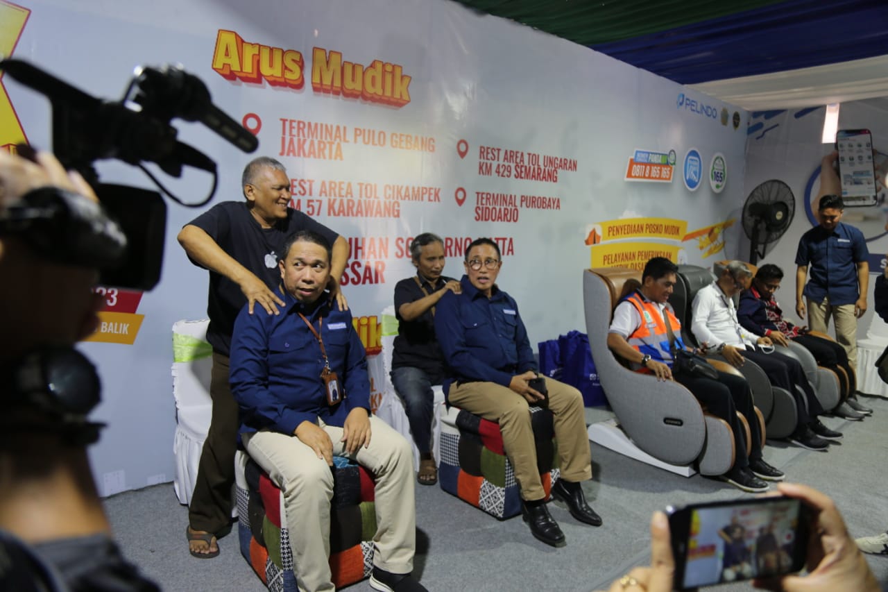 Layanan pijat di Posko Mudik BPJS Kesehatan di Pelabuhan Soekarno Hatta, Makassar berlangsung pada 18-21 April 2023, dan kembali hadir saat Posko Balik pada 25-27 April 2023.