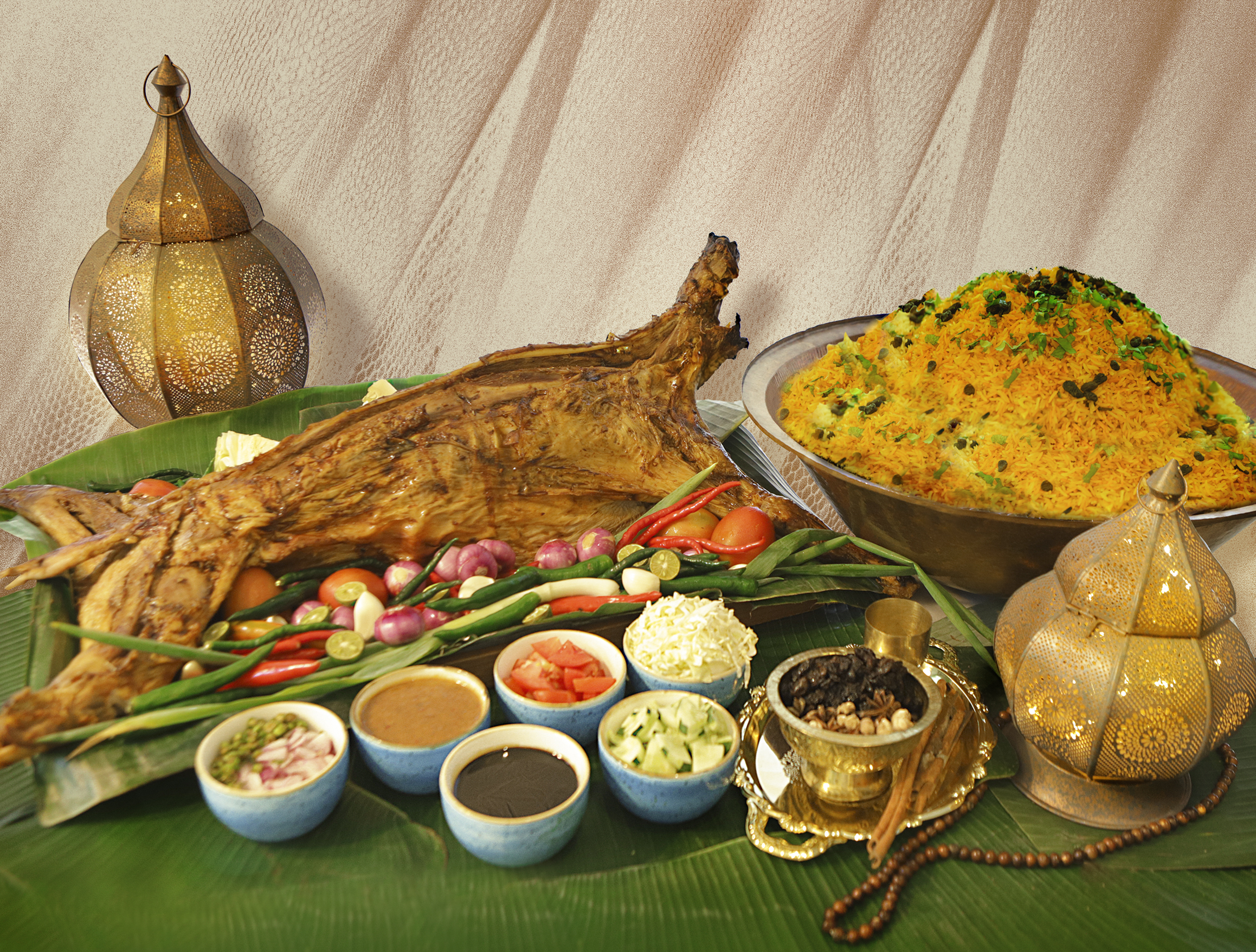 Kampoeng Ramadhan menghadirkan berbagai macam hidangan khas Nusantara dan Timur Tengah, serta satu sajian yang terbuat dari vegetasi salah satu titik garis imajiner, Pohon Kuweni.
