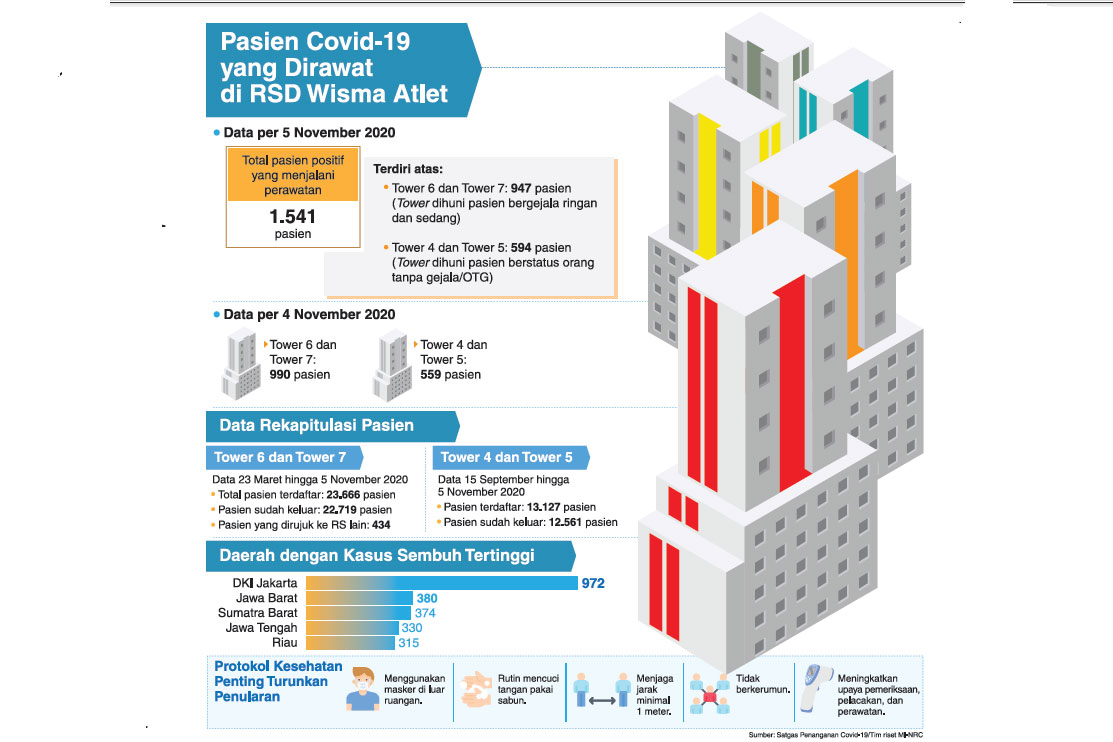 Aris mengatakan total pasien yang dirawat di tower 6 dan 7 selama 7 bulan terakhir, yakni mulai dari 23 Maret hingga 24 Oktober berjumlah 22.472 orang.