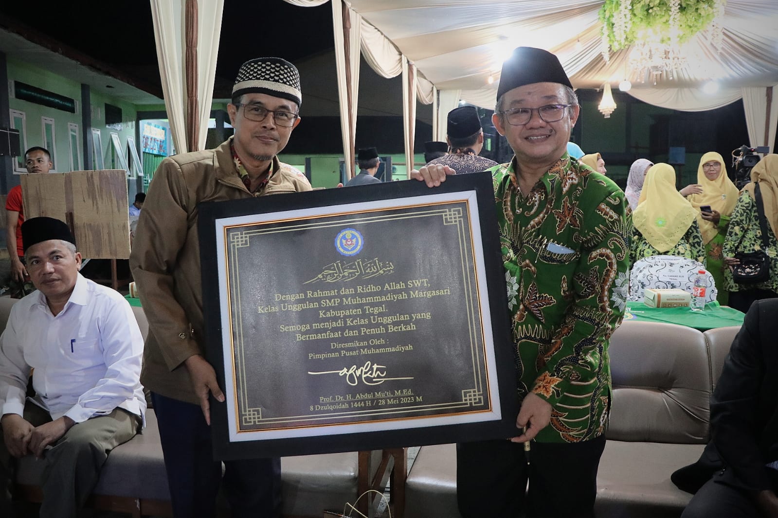 Kepala SMP Muhammadiyah Margasari Kabupaten Tegal berterima kasih kepada Sekum PP Muhammadiyah yang sudah menandatangani prasasti dan meluncurkan program excellent class.