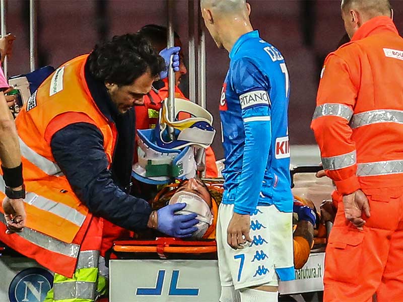 Ospina harus mendapatkan perawatan pada menit 41 setelah bertabrakan dengan Ignacio Pusetto saat Napoli menang 4-2 atas Udinese, Minggu (17/3).
