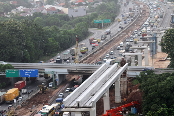 PENGERJAAN jalur light rail transit (LRT), proyek kereta cepat, dan jalan tol layang (elevated) Jakarta-Cikampek dihentikan