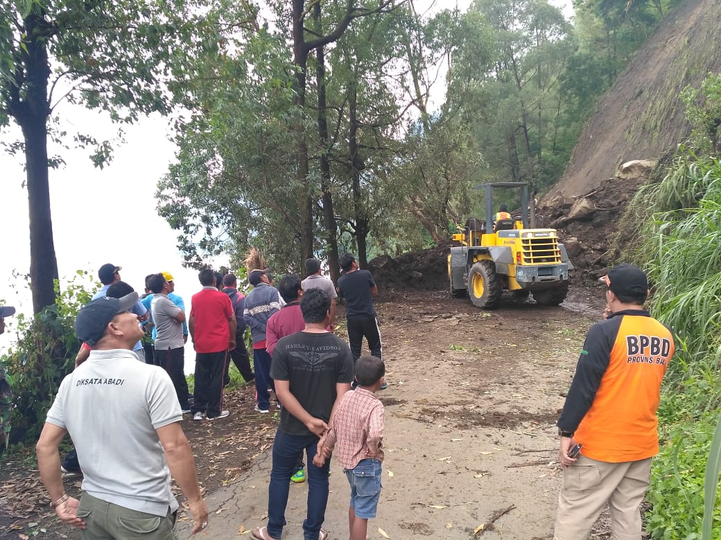 Faktor cuaca hujan deras menjadi kendala dalam penanganan material longsoran yang menutup akses jalan menuju desa tersebut.