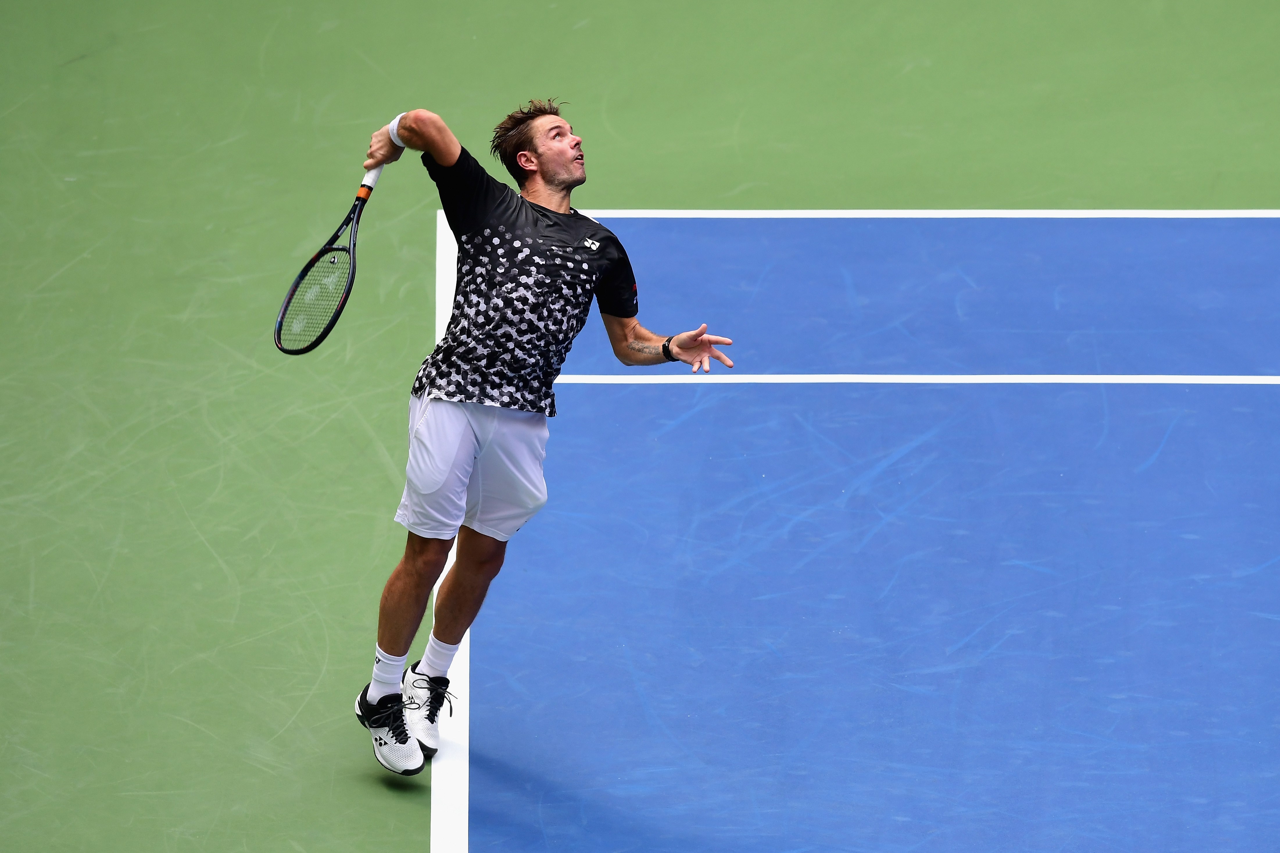 Wawrinka, yang absen di AS Terbuka tahun lalu karena menjalani dua kali operasi lutut membukukan kemenangan 6-3, 6-2, dan 7-5 di Stadion Arthur Ashe untuk mengulangi kemenangannya atas Dimitrov di putaran pertama Wimbledon.