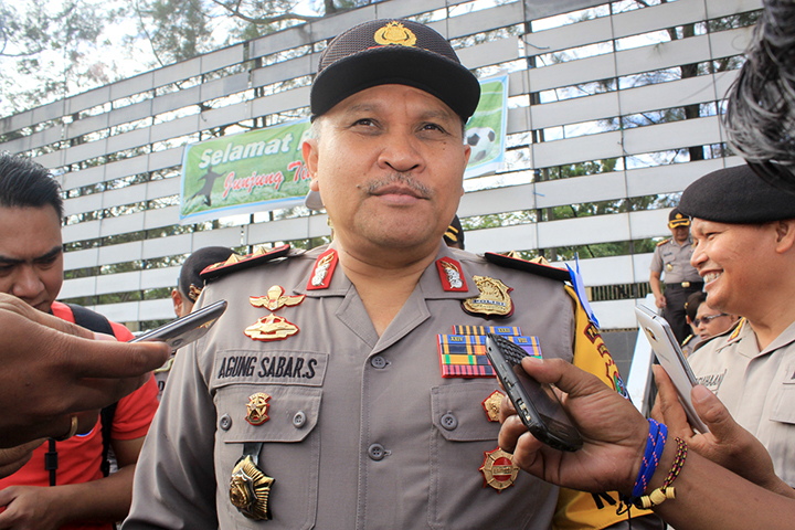 PETUGAS polisi memperketat penjagaan setelah peristiwa baku tembak dengan enam terduga teroris jaringan Jemaah Islamiyah (JI) di Lampung, Rabu (12/4).