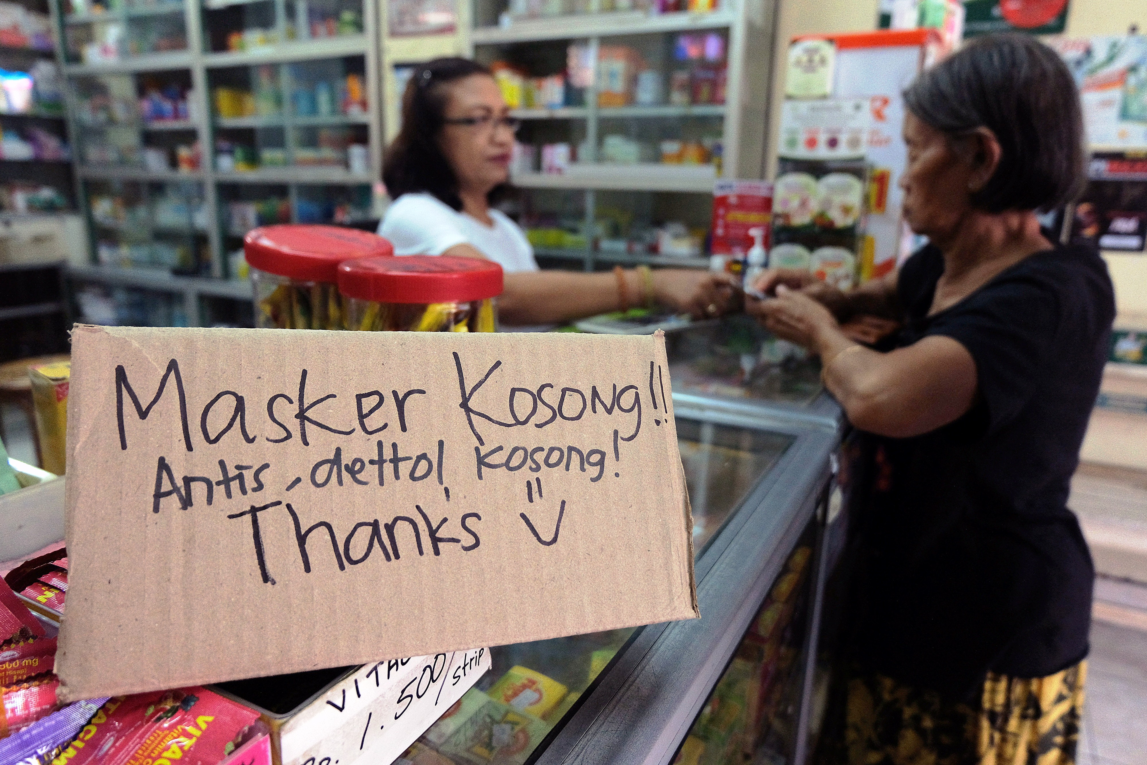 Sejumlah apotek dan toko obat di Kota Palu dan Kabupaten Sigi tidak lagi memasarkan cairan pencuci tangan dan masker karena kehabisan stok.