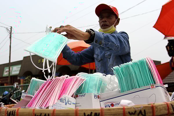 Kini, harga masker biasa mencapai Rp170.000 hingga Rp350.000 per boksnya yang berisi 50 buah. Harga normalnya padahal hanya sekitar Rp15.000 hingga Rp25.000 per boks.